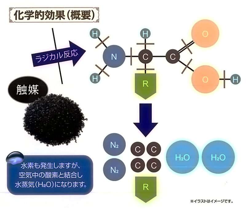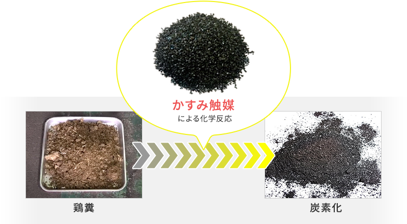 炭素化に使用する「かすみ触媒」で、有機物を化学分解。